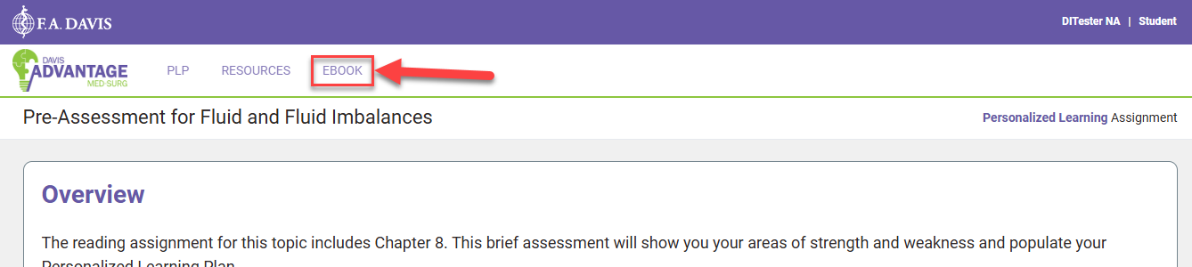 To access the eBook of your textbook, launch any Davis Advantage assignment linked in your Learning Management System. For help accessing your Advantage assignments via your LMS, please consult our "Quick-start Guide" article.