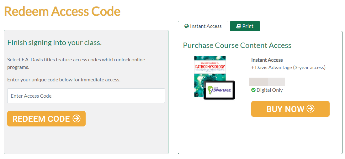 If a student claims to have access to their required textbook via FADavis.com, yet is asked to redeem an Access Code upon their initial launch of your inserted Advantage assignments, it's likely the student purchased their textbook resources using a personal email address rather than their institutional email.